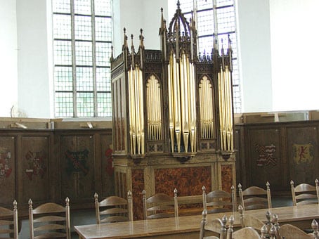 De dispositie van het orgel: (James Bruce, ca. 1834)