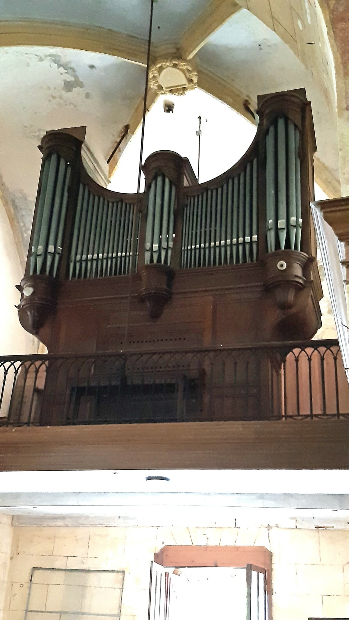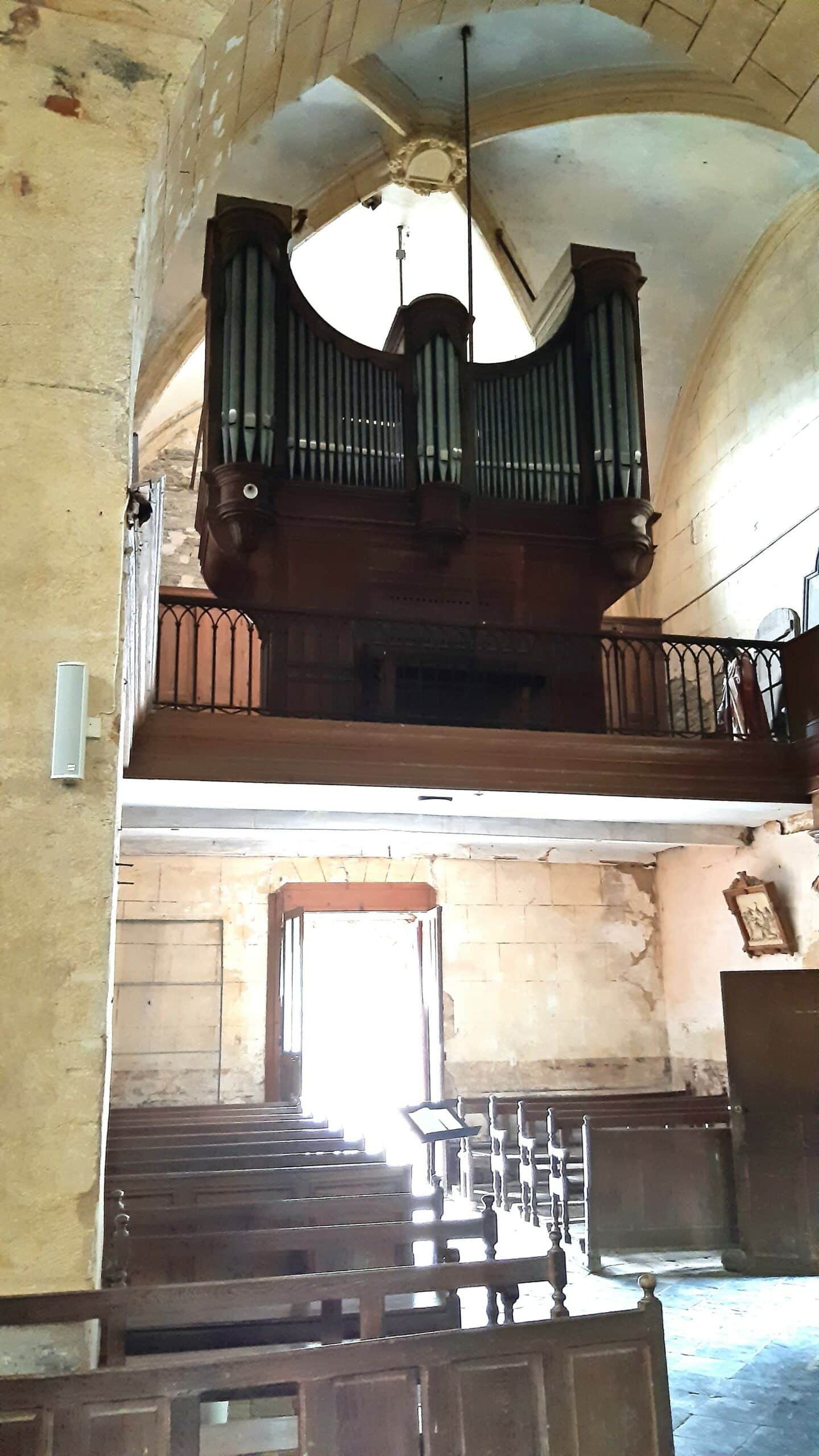 Manual (C-g3): 56 toetsen Bourdon 16′ (B/D), Montre 8′, Viole de Gambe 8′, Voix Céleste 8′ (from c°), Bourdon 8′, Prestant 4′ (B/D), Trompette 8′ (B/D).