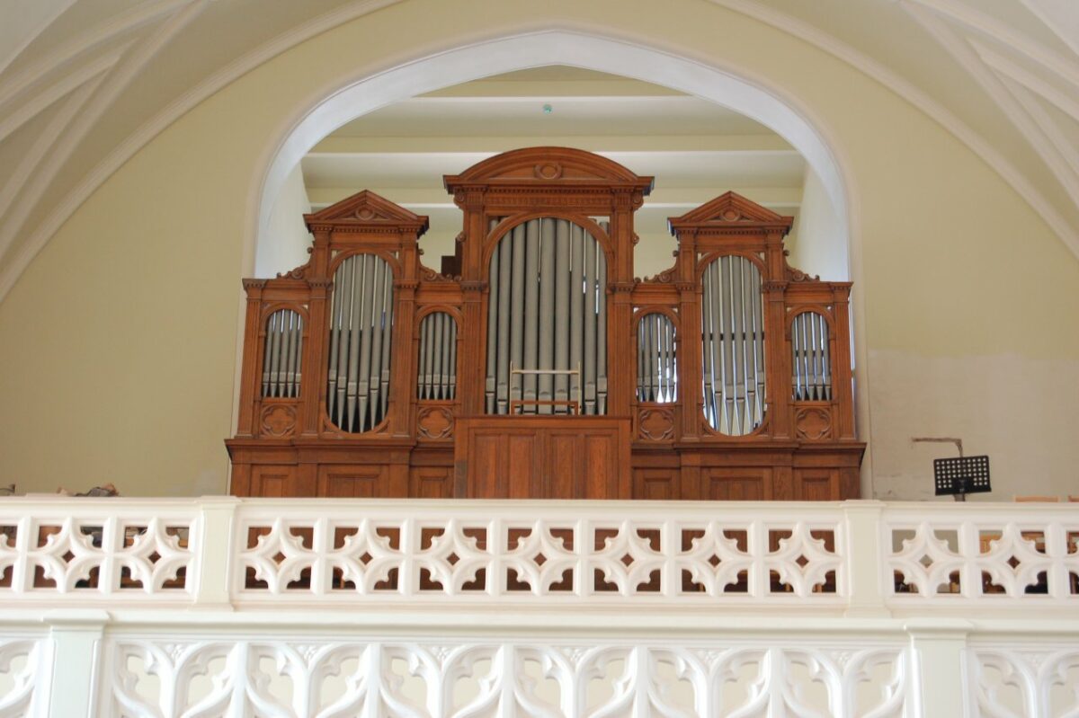 I. MANUAL (C-g3): 56 TOETSEN Bordun 16′, Principal 8′, Floete 8′, Gedackt 8′, Gamba 8′, Viola d’Amour 8′, Oktave 4′, Rohrfloete 4′, Cornett 3-5 fach (2 2/3′), Trompete 8′.