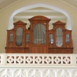 II. MANUAL (C-g3): 56 TOETSEN Lieblich Gedackt 16′, Geigenprincipal 8′, Concertfloete 8′, Quintatön 8′, Dolce 8′, Traversfloete 4′, Gemshorn 4′, Mixtur 4 fach (2 2/3′), Clarinette 8′ – doorslaand.