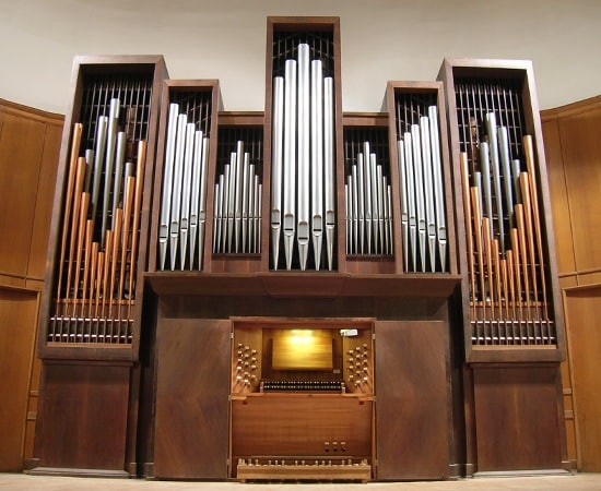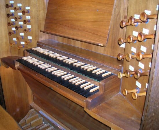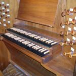 OBERWERK (C-g3): 56 TOETSEN Gedackt 8′, Prinzipal 4′, Nachthorn 4′, Oktave 2′, Terz 1 3/5′, Quinte 1 1/3′, Sifflöte 1′, Scharf 4 fach, Krummhorn 8′, Tremulant.