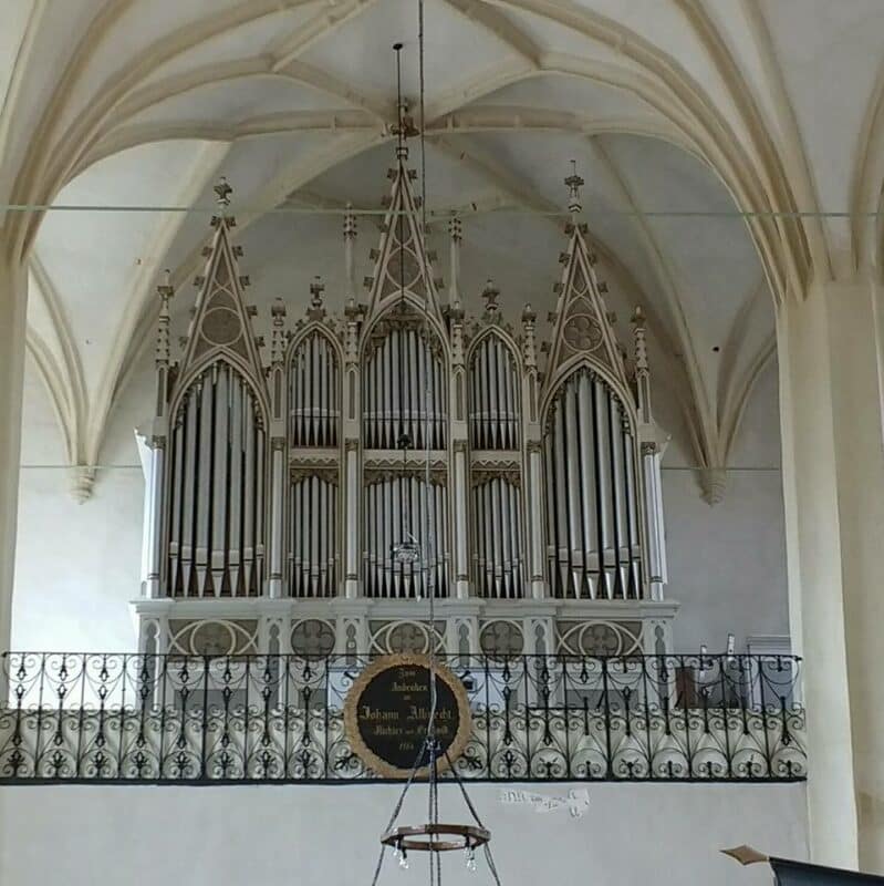 in 1873 kocht men voor de Evangelische Kirche te Meschen (Sibiu) Roemenië, tegenwoordig Moșna genoemd, een mechanisch sleepladen-orgel (opus 100) van Carl Hesse, dat eerder was tentoongesteld tijdens de wereldtentoonstelling in Wenen. Het werd in 1874 in gebruik genomen in de kerk. Sinds ongeveer 1990 verkeerde het orgel in onbespeelbare staat. De kerk met de kerkburcht werden eerst gerestaureerd. In 2014 volgde de restauratie van het orgel, door Hermann Binder. Op 4 augustus 2014 is het instrument weer in gebruik genomen.