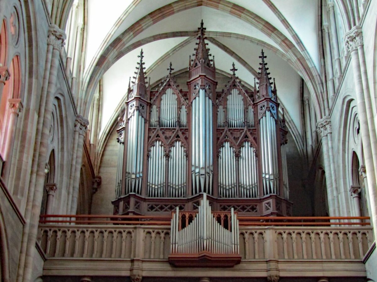 IV. Récit Expressif: C – g3 Flûte Traversière 8′, Viole de Gambe 8′, Voix Céleste 8′, Flûte Octaviante 4′, Octavin 2′, Trompette 8′, Basson/Hautbois 8′, Voix Humaine 8′, Tremolo.