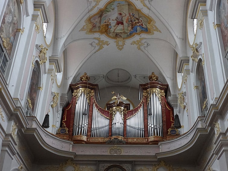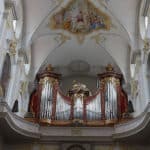 HAUPTWERK (C – g3) 56 TOETSEN: Praestant 16′, Principal 8′, Doppelflöte 8′, Viola 8′, Bordun 8′, Octave 4′, Blockflöte 4′, Quinte 2 2/3′, Superoctave 2′, Terz 1 3/5′, Mixtura Maior 4 fach (2′), Mixtura Minor 4 fach (1′), Bombarde 16′, Trompette 8′, Zimbelstern.