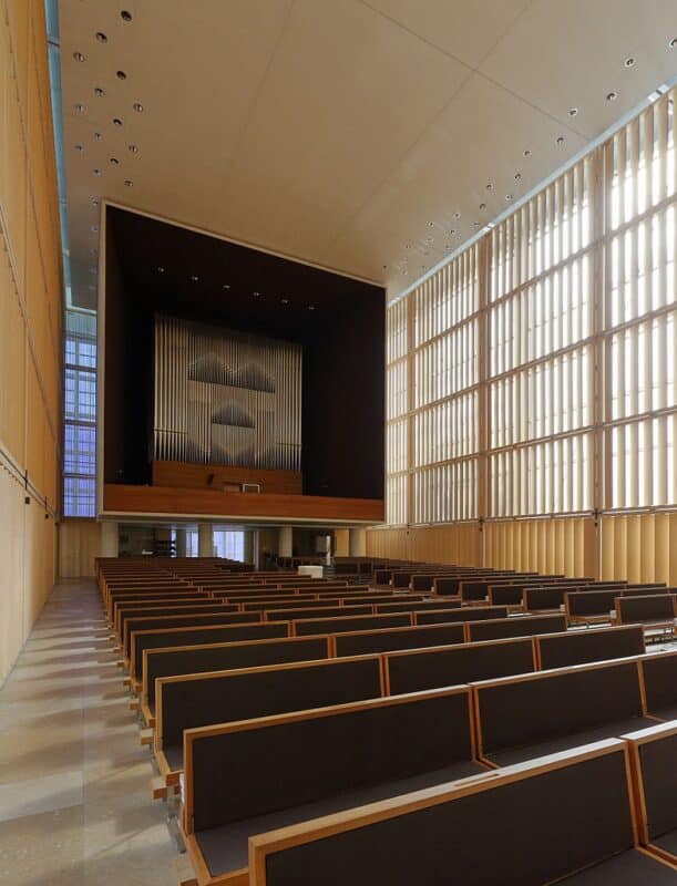 SCHWELLWERK (C – a3) 58 TOETSEN: Quintaton 16′, Diapason 8′, Flûte Traversière 8′, Cor de Nuit 8′, Viole de Gambe 8′, Voix Céleste 8′ (from c°), Dulciana 4′, Flûte Octaviante 4′, Quinte 2 2/3′, Octavin 2′, Tierce 1 3/5′, Cymbale 3 fach, Basson 16′, Trompette Harmonique 8′, Basson-Hautbois 8′, Voix Humaine 8′, Clairon Harmonique 4′, Tremulant (stark).