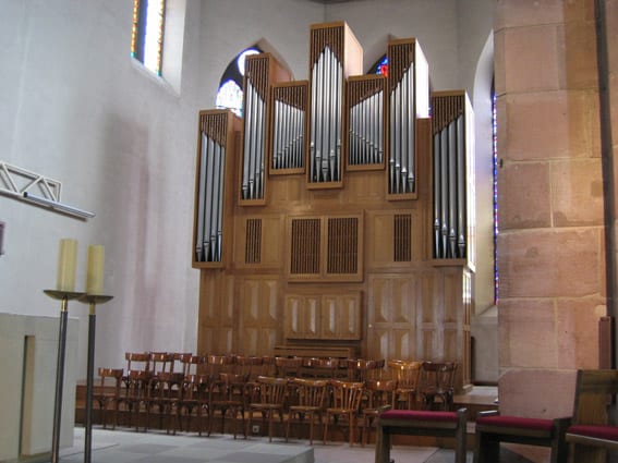 Koppelingen: Hauptwerk – Brustwerk, Hauptwerk – Résonance, Pedal – Hauptwerk, Pedal – Brustwerk, Pedal – Résonance.