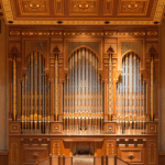ECHO ORGAN (IN ZWELKAST) (C – c4) 61 TOETSEN: Violoncello 8′, Echo Gedackt 8′, Echo Dulciana 8′, Viol d’Orchestra 8′, Unda Maris 8′, Flauto Traverso 4′, Magic Flute 4′, Echo Twelfth 2 2/3′, Echo Piccolo 2′, Echo Seventeenth 1 3/5′, Echo Piccolino 1′, Orchestral Clarinet 8′, Orchestral Oboe 8′, Tremulant.