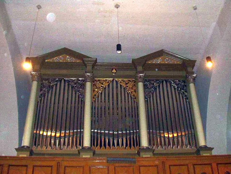 Hauptwerk: C-a3 Bourdon 16′ – 1855, Principal 8′, Bourdonflöte 8′ – 1855, Gemshorn 8′ – 1855, Octave 4′, Rohrflöte 4′, Quint 2 2/3′ – 1855, Doublette 2′ – 1855, Kornett 5 fach (8′), Mixtur 4-5 fach (2′), Scharff 3 fach (1′), Trompete 8′.