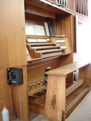 Accouplements: Pos./G.O., Réc./G.O. Tirasses: Pos., G.O., Réc. Appel anches. Tutti.