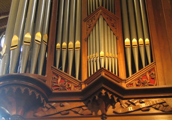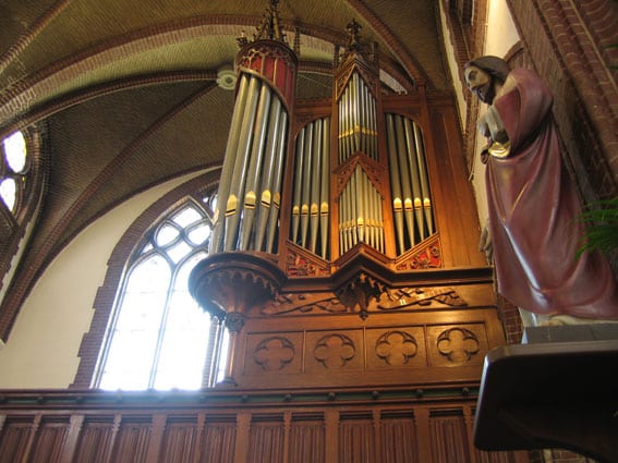 Daardoor kon de speeltafel beneden worden opgesteld, vlakbij het koor.