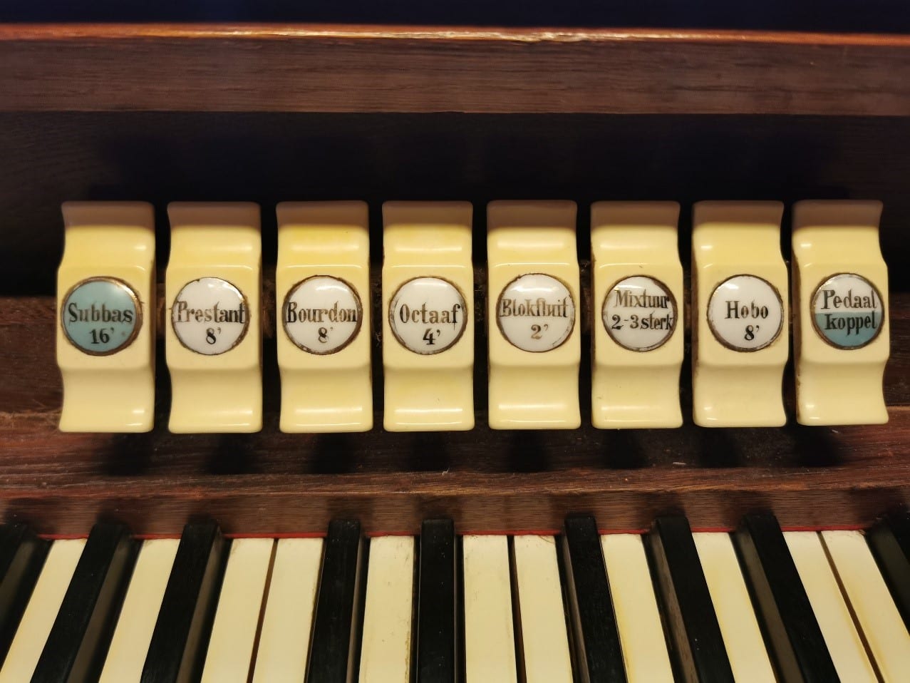 Manuaal: Prestant 8′, Bourdon 8′, Octaaf 4′, Blokfluit 2′, Mixtuur 2-3 sterk (2′), Hobo 8′.