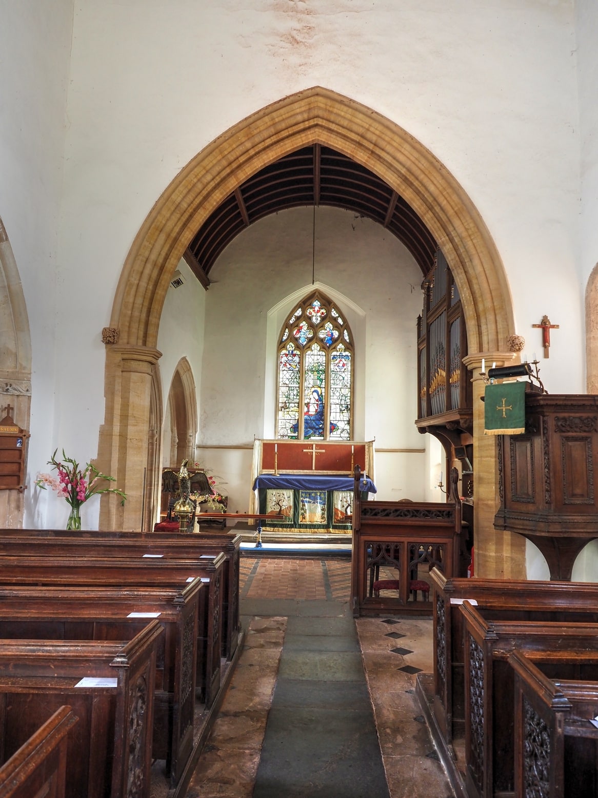 GREAT (C – g3) 56 TOETSEN: Open Diapason 8′, Dulciana 8′, Principal 4′.