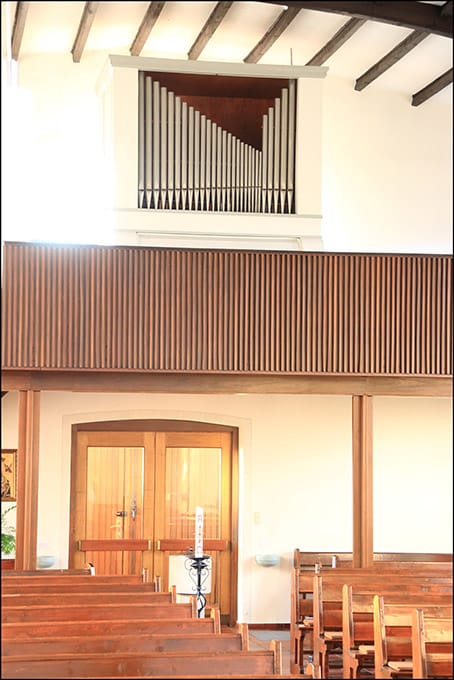 II. MANUAL (C – g3) 56 TOETSEN: Holzgedackt 8′, Quintade 4′, Schwegel 2′, Terz 4/5′.