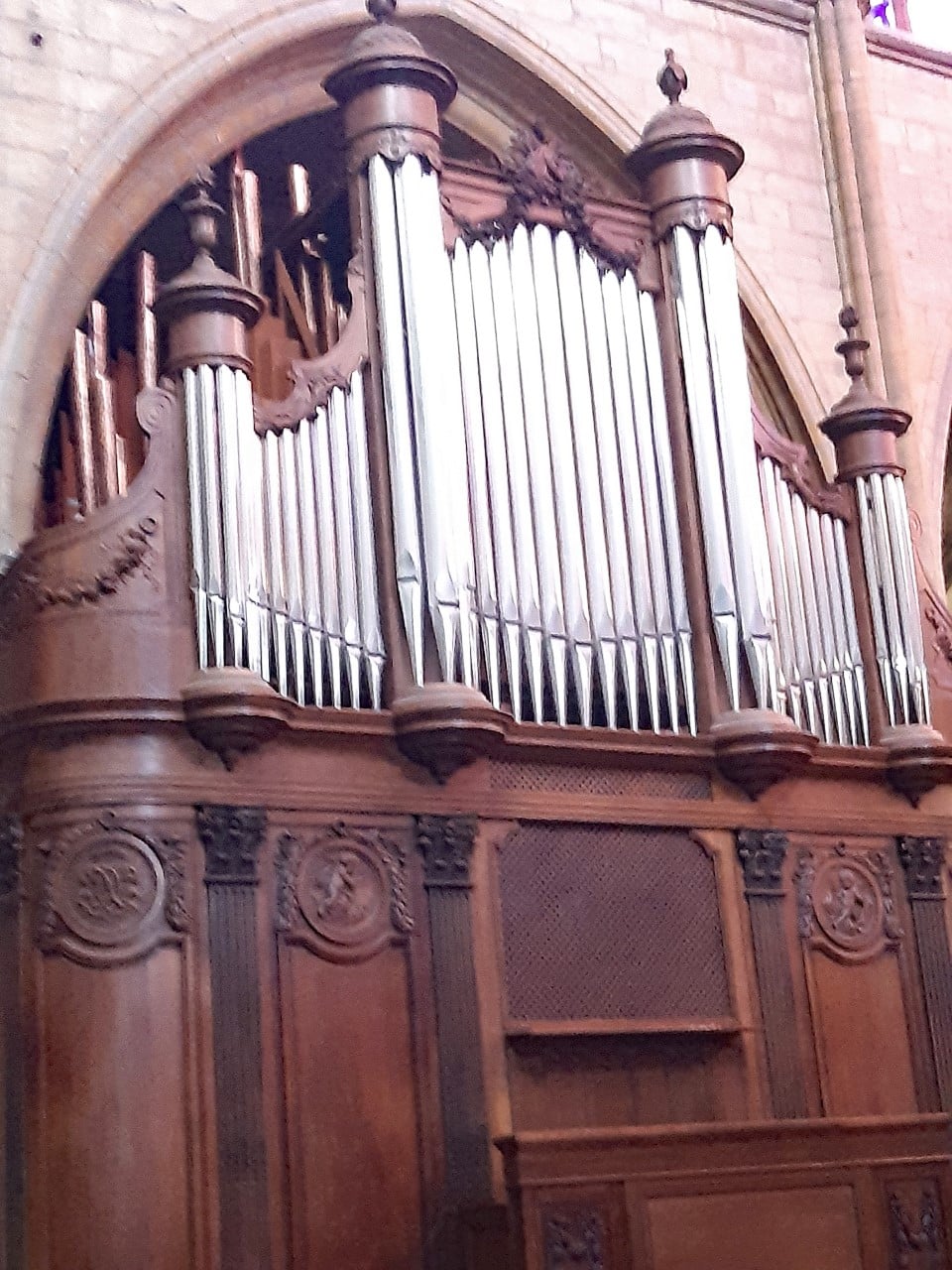 III. Récit Expressif: C – g3 Dulciane 8′, Cor de Nuit 8′, Voix Céleste 8′, Principal 4′, Flûte 4′, Flûte 2′, Cornet V (discant 1′), Carillon III, Trompette 8′, Hautbois 8′, Voix Humaine 8′, Trémolo.