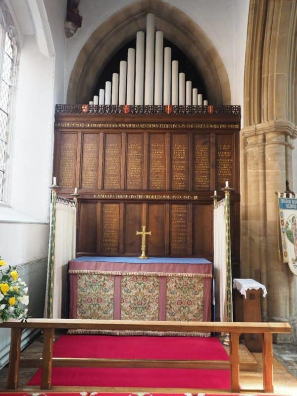 Great: C – g3 Double Diapason 16′ – 1867, Open Diapason No 1 8′ – 1867, Open Diapason No 2 8′ – 1905, Claribel Flute 8′ – 1867, Principal 4′ – 1867, Flauto Traverso 4′ – 1867, Twelfth 2 2/3′ – 1867, Fifteenth 2′ – 1867, Mixture III (17.19.22) – 1867.