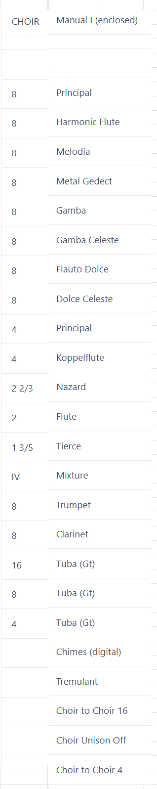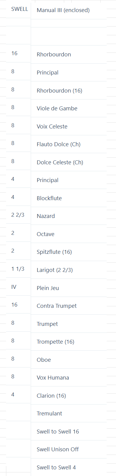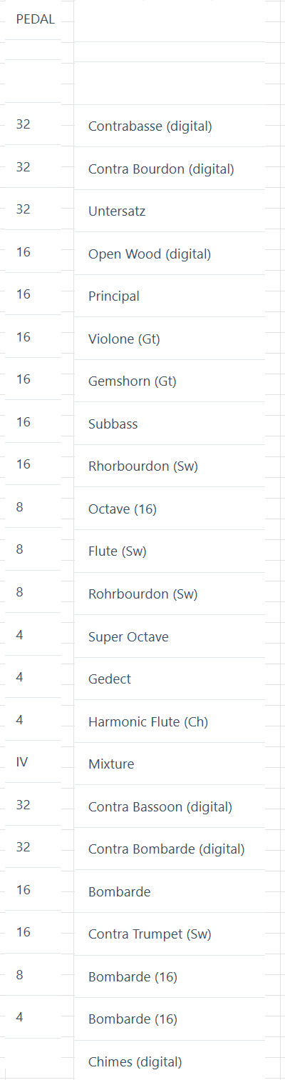 Dan Garland & Associates, Pipe Organs, Inc. bouwde in een onbekend jaar een nieuw orgel met 4 manualen en een vrij pedaal voor de Saint George’s School in Newport (Rhode Island) USA. Het pedaalklavier is radiaal concaaf.
