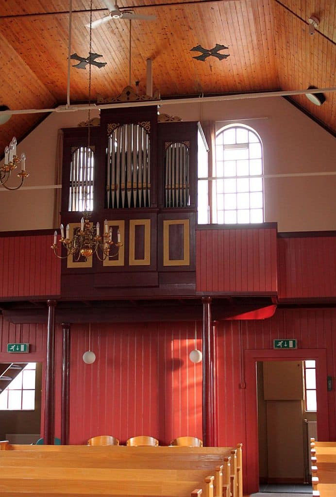 Manuaal: Prestant 8’, Holpijp 8’, Vox celeste 8’, Oktaaf 4’, Fuit 2’, Super oktaaf.