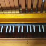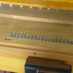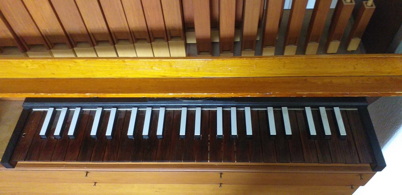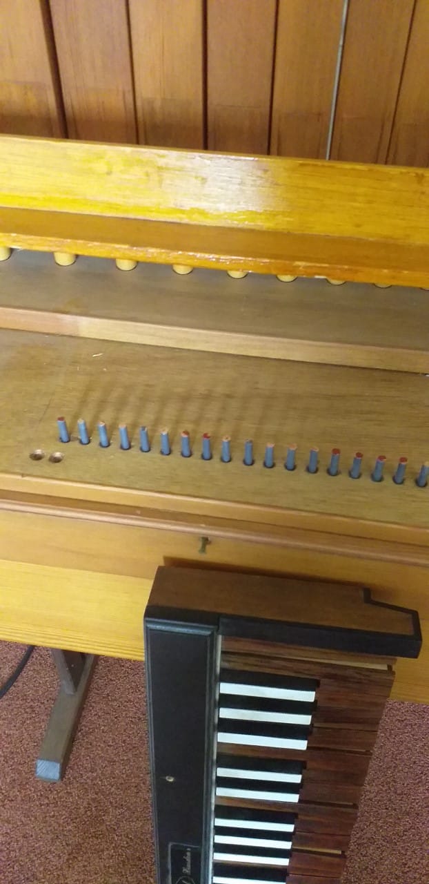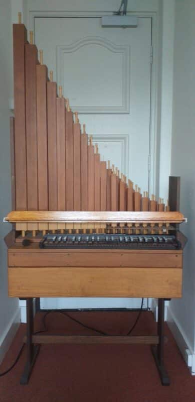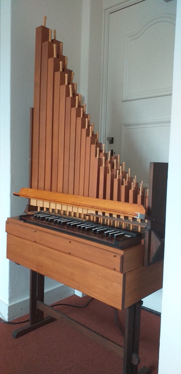 De bouwer van het huisorgel van Carlo Roosen uit Nieuwkuijk (Noord-Brabant) is Bernard Vermeul, ik vermoed dat het orgel gebouwd is in2000 of 2001. Dat zijn de jaren waarvan ik advertenties kon terugvindenin het blad van de harmoniumvereniging. Ook heb ik een verslag van deoplevering van een huisorgel gevonden uit 2001. Op het etiket in dewindlade staat naast de naam en adres van de bouwer ook een logo met“stichting orgel 2000”. Ik denk daarom dat deze bouwer maar kort actiefis geweest.Omvang E-c3, een enkel register, gedekt 8′ (heet het nog steeds een 8′als de C er niet op zit? Ik denk het wel…)Op de foto’s is te zien dat het klavier een halve toon verschuifbaar is,met twee gaten voor een paspen. Het klavier blijft op zijn plek met eenmagneetje. Er is een extra pijp voor de hoogste toon in de verschovenpositie, een c#”’ dus eigenlijk. Het orgeltje is professioneel gebouwden vertoon geen mankementen. Ik vermoed dat de winddruk wat hoog is, ikga hier nog onderzoek naar doen. Maar de klank is een beetje hard, zekerin de kleine kamer waar het orgel nu staat.Er zijn aanpassingen aan het orgel door de vroegere eigenaar enopdrachtgever. Er is een lezenaar aangebracht. Enkele stekerpennen uithet klavier zijn vervangen door carbon busjes. Enkele stoppen ontbrekenen zijn vervangen door isolatiemateriaal op een saté-prikker.Het orgel is trouwens terug in de gemeente waar het gebouwd is, hetstaat in de abdij van Mariënkroon in Nieuwkuijk. Het is privé bezit maarwie het wil bekijken/beluisteren/bespelen kan bij de receptie even vragen.