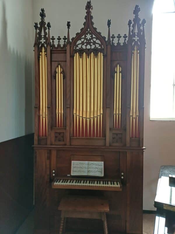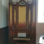 MANUAL (C – g3) 56 TOETSEN: Stop Diapason 8′ Treble, Stop Diapason 8′ Bass, Dulciana 8′ (vanaf c°), Principal 4′.