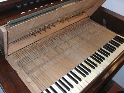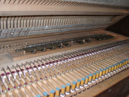De toetsen, en de veren die de toetsen terug doen veren.
