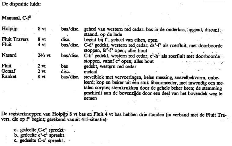 Holpijp 8′ B en Fluit 4′ B  hebben 3 standen. i.v.m. Fluit Travers die vanaf f0 begint; Gerekend vanaf a’ = 415 Hz. situatie.