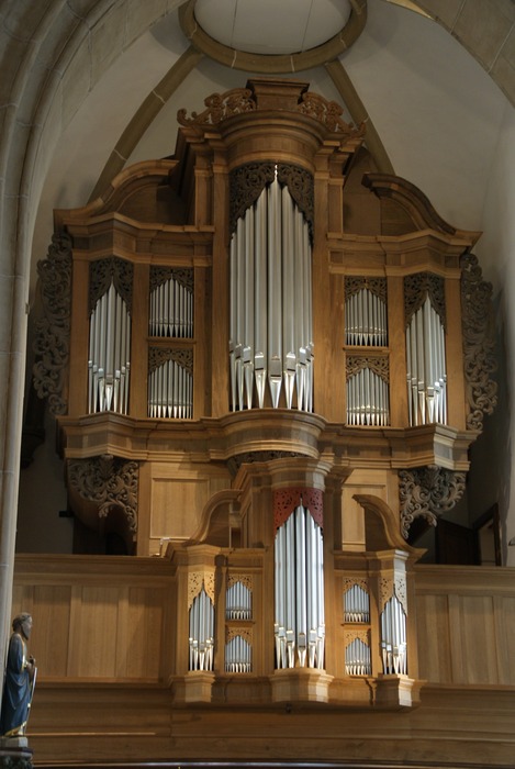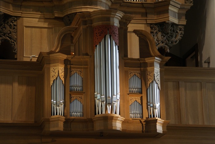 HAUPTWERK (CD – d3) 50 TOETSEN: Bardun 16′, Praestant 8′, Hohlfloit 8′, Octave 4′, Duesfloit 4′, Quinta 3′, Super Octav 2′, Sesquialtera 2 fach – prepared for, Mixtur 4 fach, Cymball 2 fach, Trompete 8′, Tremulant.