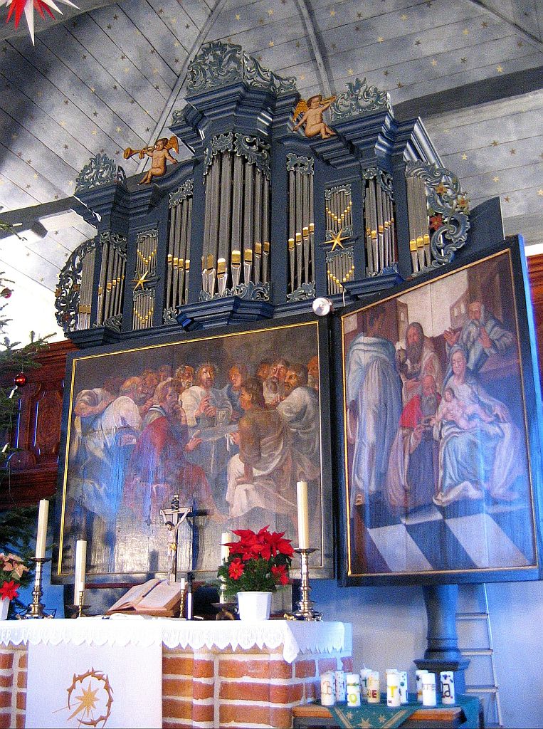 In 1775 bouwde Hinrich Just Müller een nieuw mechanisch sleepladen-orgel voor de Sankt Georgkirchein Nortmoor. Het instrument is in 1982 door de firma Alfred Führer Orgelbau gerestaureerd. Het orgel heeft een Wohltemperierte stemming en de toonhoogte is 1/4 toon boven normaal. De winddruk is 60 mm waterkolom.