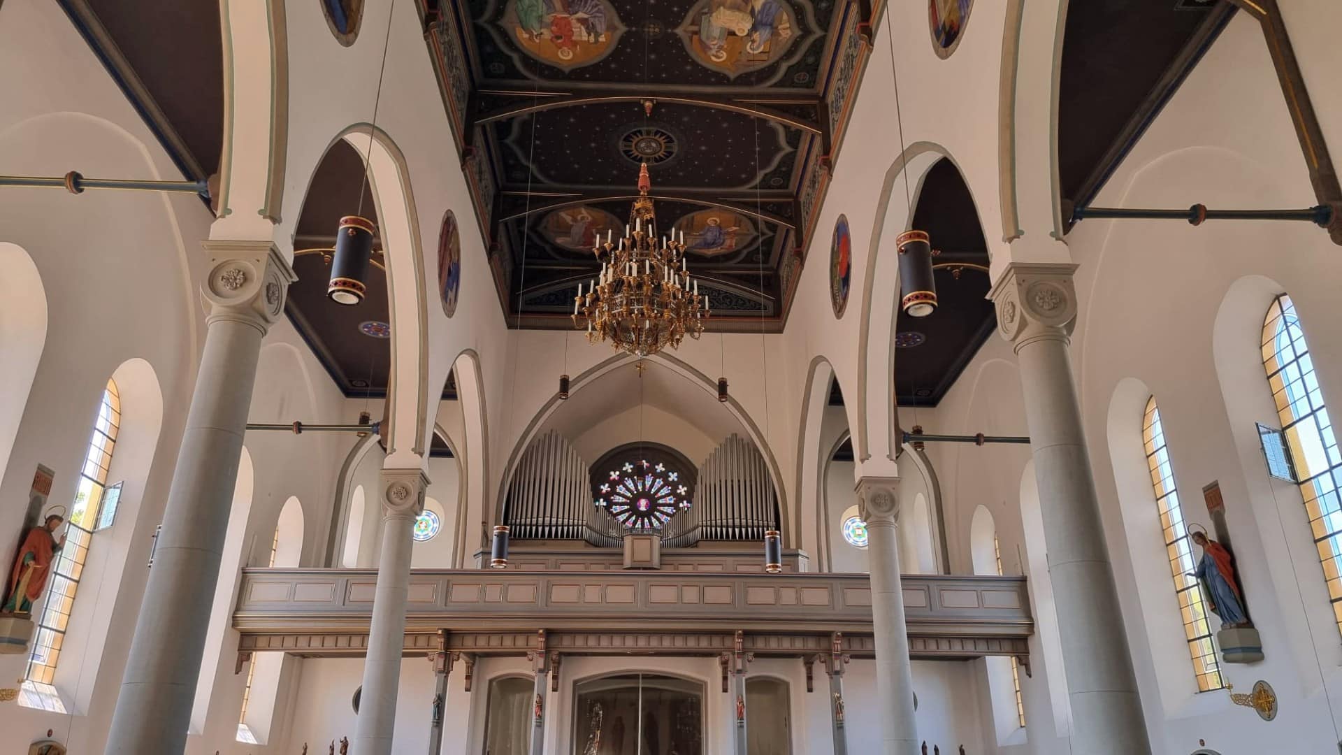 MANUAL I (C – g3) 56 TOETSEN: Principal 16′, Principal 8′, Gedeckt 8′, Gamba 8′, Flûte Harmonique 8′, Dolce 8′, Oktav 4′, Rohrflöte 4′, Rauschquinte 2 fach (2 2/3′), Kornett 5 fach (8′), Mixtur 3-4 fach (2′), Trompete 8′.