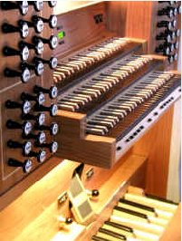 Schwellwerk: (C-g3) Holzprincipal 8 Rohrflöte 8 Salicional 8 Voix Céleste 8 Flûte Octaviante 4 Fugara 4 Nasard 2 2/3 Flageolett 2 Tierce 1 3/5 Plein Jeu V 2 2/3 Basson 16 Trompette harmonique 8 Hautbois 8 Tremulant |