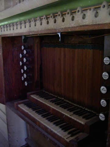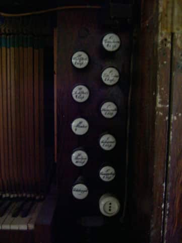 Oberwerk: (C-f3) Lieblich Gedackt 8 Harmonika 8 Salicional 8 Gemshorn 4 Flauto dolce 4 Floete picolo 2 |