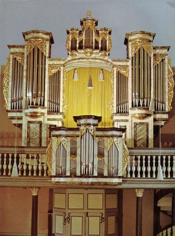 Rückpositiv: Gedackt 8′, Salizional 8′, Prinzipal 4′, Koppelflöte 4′, Schwegel 2′, Terz 1 3/5′, Quinte 1 1/3′, Scharf 5 fach, Krummhorn 8′, Tremulant.