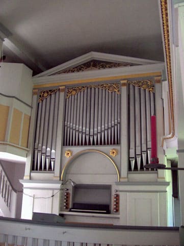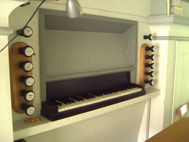 | Manual: (C-g3) Geigenprincipal 8 Hohlflöte 8 Lieblich Gedackt 8 Flauto traverso 8 Gambe 8 Octave 4 Flauto amabile 4 Octave 2 (Extraregisterzug)) |