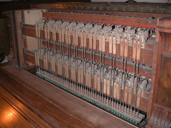 | Manuaal II: Célesta van c – c ´´´´ op 4-voets basis. Manuaal I: Kunstharmonium (double expression), dispositie v.l.n.r.: |