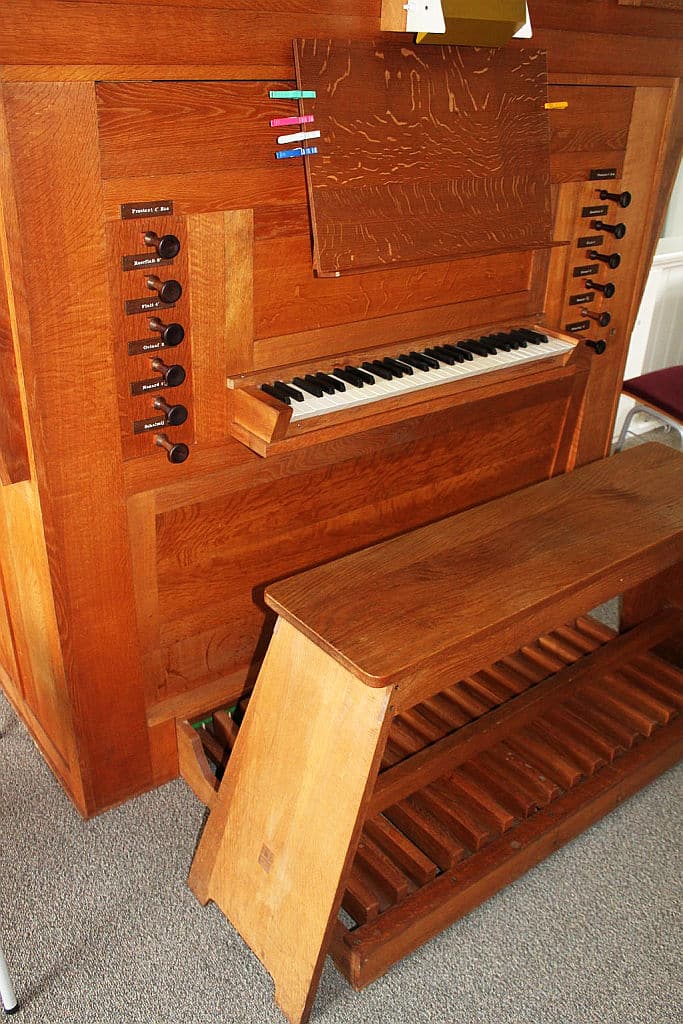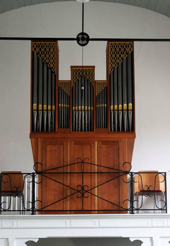 Manuaal: C – f3 Roerfluit 8′ (B/D), Prestant 4′ (B/D), Fluit 4′ (B/D), Octaaf 2′ (B/D), Nazard 1 1/3′ (B/D), Schalmij 8′ (B/D).