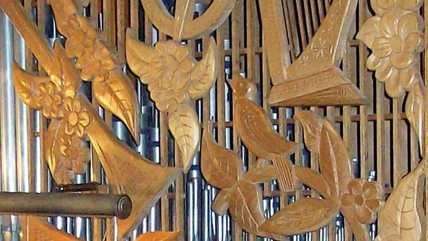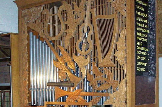Vermeldenswaardig is dat het snijwerk is vervaardigd door de plaatselijke pater en in 1981 is geplaatst om het orgel te verfraaien.