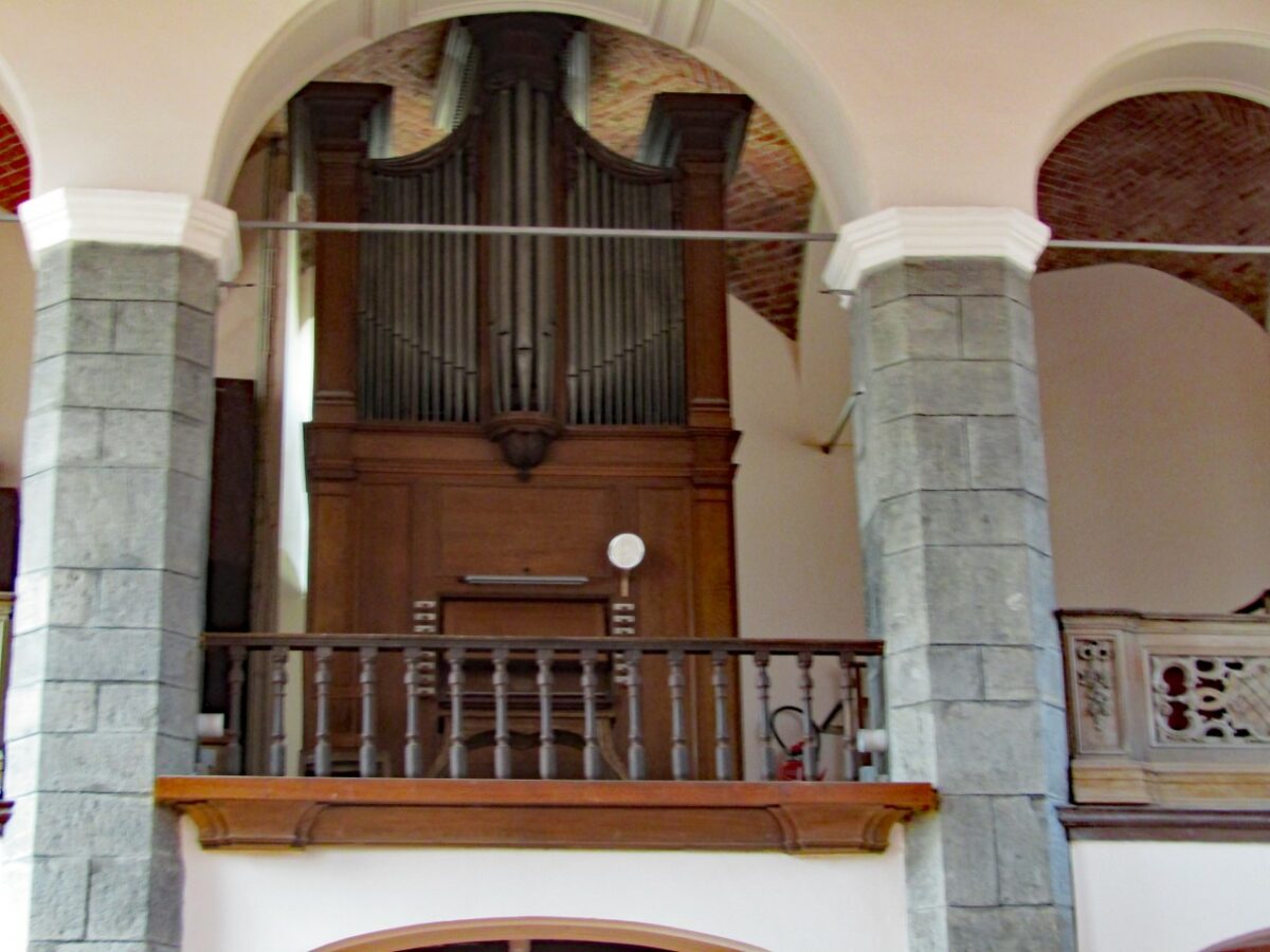 Manual: C – f3 Bourdon 16′ – 1920, Montre 8′, Bourdon 8′, Prestant 4′, Flûte 4′, Quinte 2 2/3′, Doublette 2′, Fourniture 3 rangs, Trompette 8′, Clairon 4′.