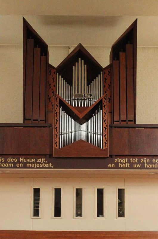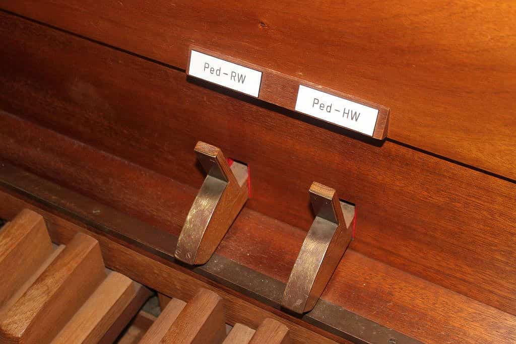 Couplers: Keerkoppel Hoofdwerk – Rugwerk, Pedaal – Hoofdwerk, Pedaal – Rugwerk.