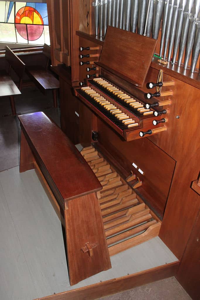 Rugwerk: C – g3 Gedekt 8′, Fluit 4′ – 1963/2000, Prestant 2′, Sesquialter II sterk (vanaf a), Tremulant.