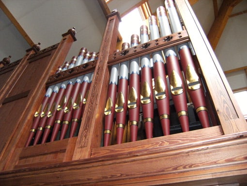 Pedal Organ: C – f1 Open Diapason 16′ – 1856, Bourdon 16′ – 1856, Violoncello 8′ – 1882, Trombone 16′ – 2012.