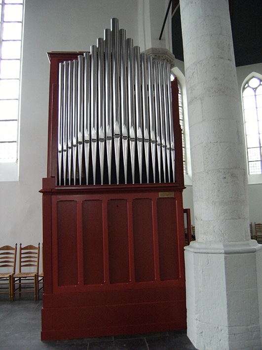 In 2006 kocht men als koororgel voor de grote kerk in Oudewater een tweedehands instrument op Jersey, afkomstig uit de Methodist Church in Saint Aubin. Het mechanische sleepladen-orgel is in 1862 gebouwd door E. Wadsworth, maar werd in 1886 door Alfred Oldknow herbouwd bij de plaatsing in de Methodist Church. Daarbij is het uitgebreid met een zwelwerk. Ide Boogaard restaureerde het orgel. Cor van Butselaar heeft veel werk verricht voor de restauratie van de kas en het orgel, en bouwde het grotendeels zelf op in Oudewater. Op 25 juni 2008 is het orgel in gebruik genomen met een bespeling door Cor van Butselaar en Gerben Mourik met medewerking van verschillende andere instrumenten. Het orgel had oorspronkelijk gedecoreerde frontpijpen, maar deze zijn bij de plaatsing in Oudewater vervangen door tinnen pijpen. Het pedaalklavier is concaaf.
