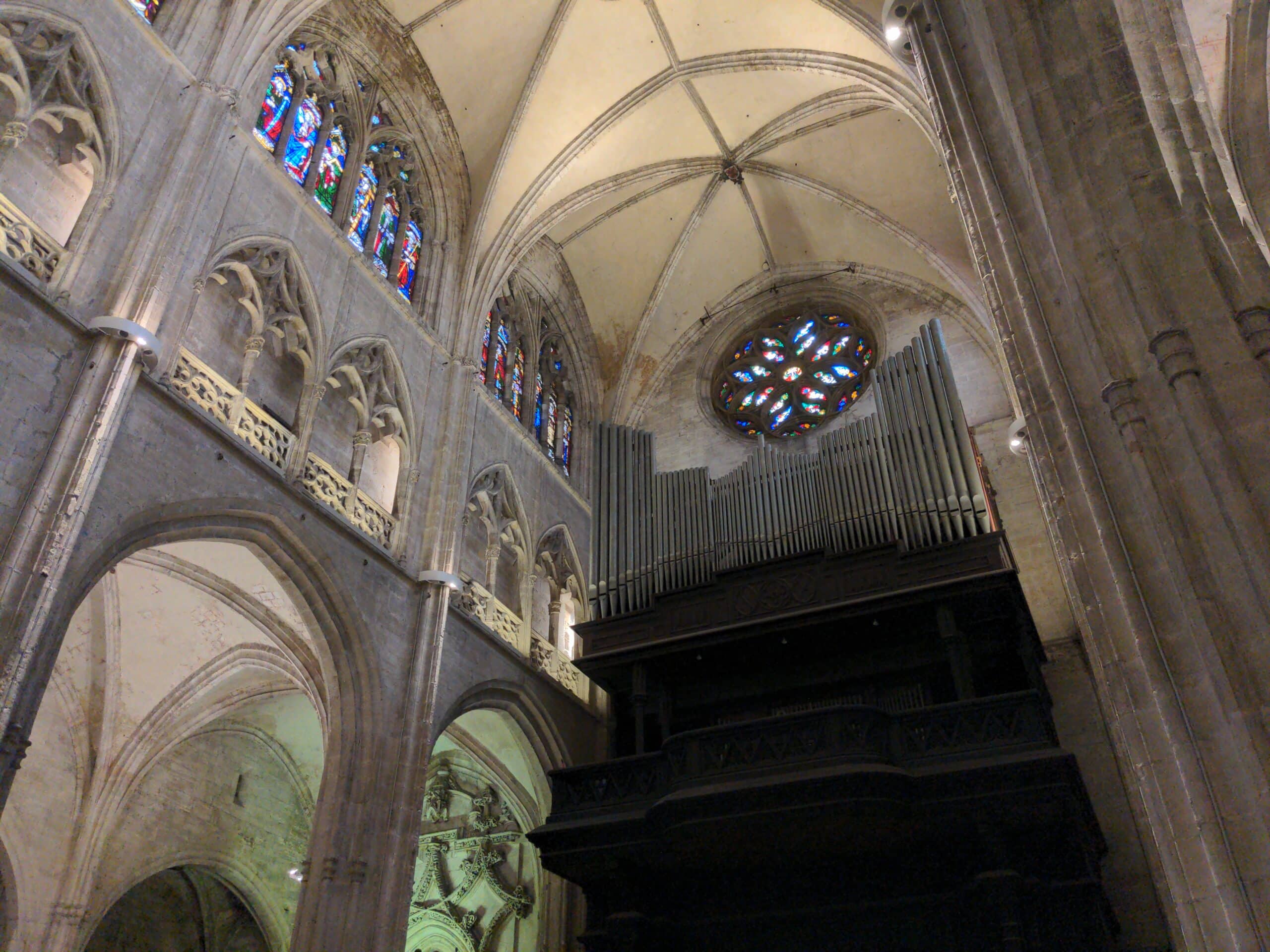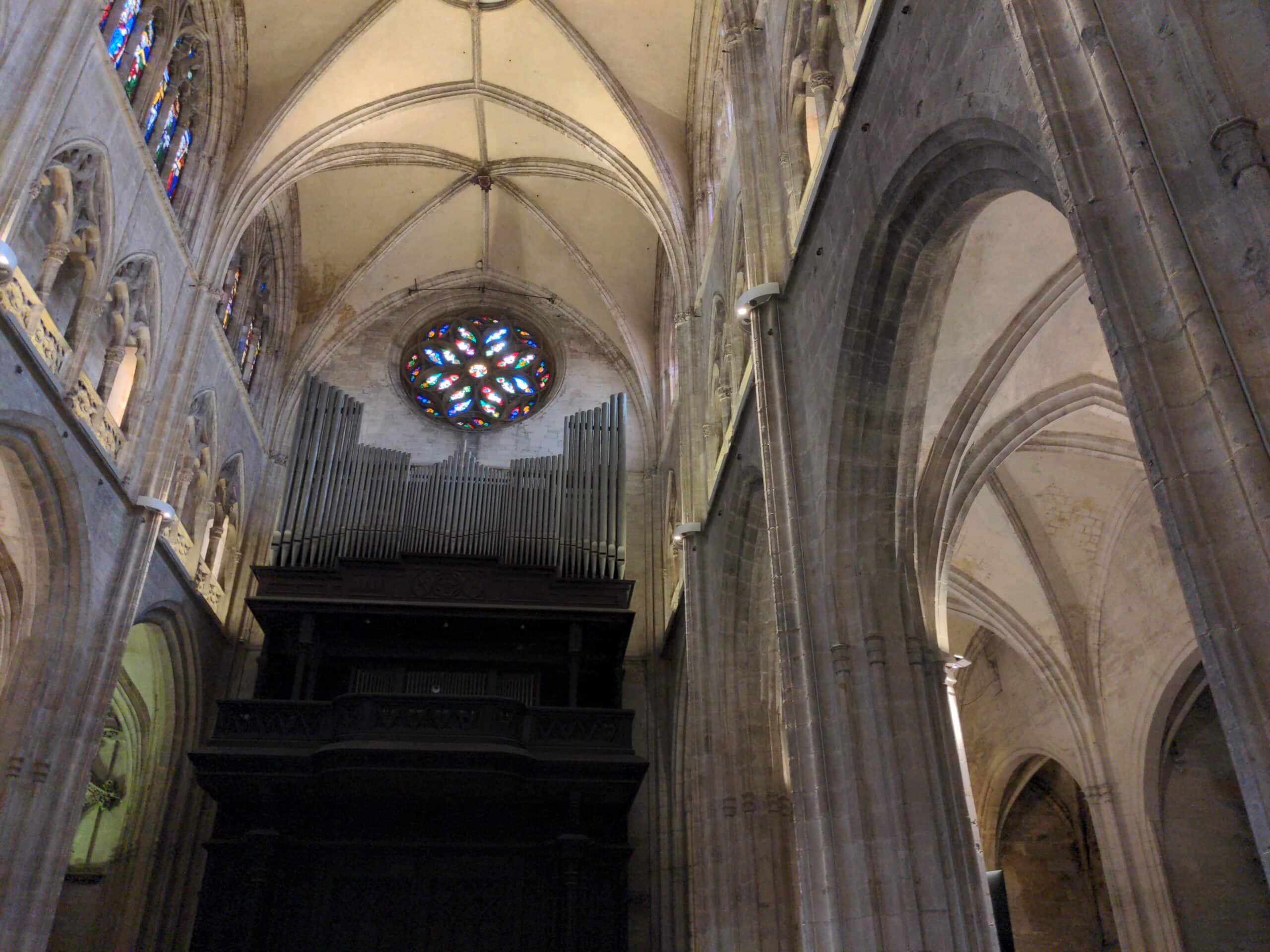 In the Catedral de San Salvador in Oviedo (Asturias), Spain, there is a pipe organ with an open façade, the history of which is unknown.
