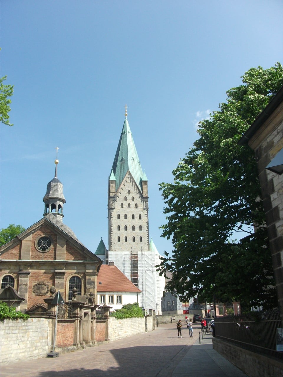 Na de Tweede Wereldoorlog werd de beschadigde Domkirche te Paderborn (Nordrhein-Westfalen) herbouwd. In 1948 is een tijdelijk orgel geplaatst. Dit werd in 1950 uitgebreid tot 25 stemmen en geplaatst op het hoogkoor. In 1952 herbouwde Anton Feith het instrument, zodat het nu 42 stemmen kreeg. In 1979 bouwde Siegfried Sauer een nieuw orgel op dezelfde plaats, maar bij de bouw werd veel pijpwerk overgenomen uit het vorige instrument, evenals de speeltafel van Feith uit 1952. In 2005 is het elektro-pneumatische kegelladen-orgel door Siegfried Sauer gereviseerd. Daarbij werd de dispositie gewijzigd. Het Positiv werd uitgebreid met een Trichterdulzian, afkomstig uit het hoofdorgel. Het Schwellwerk kreeg twee stemmen uit het Krypta-orgel, namelijk een Oboe en een Vox Humana. Tenslotte is een nieuw Hochdruckwerk met twee stemmen geplaatst als vierde klavier.