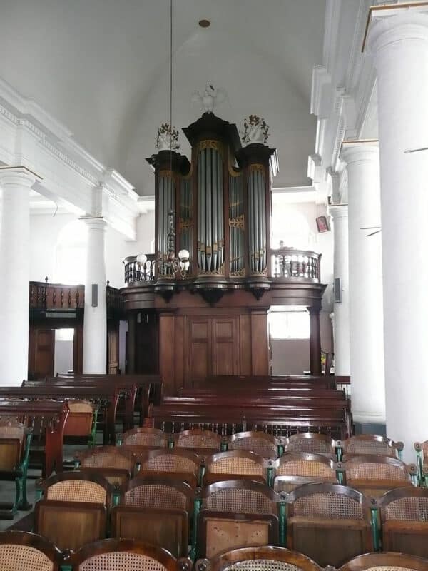 • Het mechanische sleeplade-orgel heeft 11 stemmen, 1 manuaal en een aangehangen pedaal. De toonhoogte is a’ = 448 Hz. De winddruk is 65 mm en de stemmingstemperatuur is evenredig zwevend.