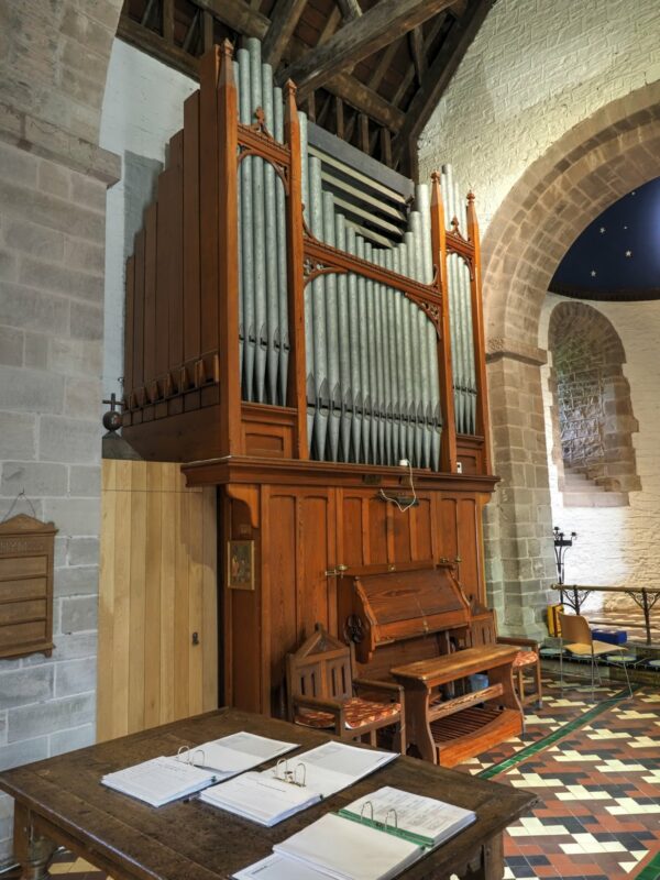 Great: C – g3 Open Diapason 8′, Dulciana 8′, Clarabella & Stopt Bass 8′, Principal 4′, Harmonic Flute 4′.