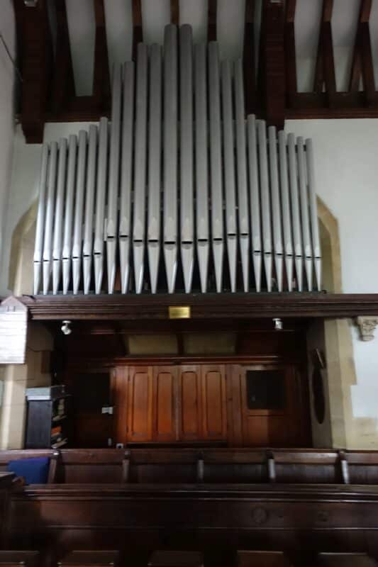 GREAT (C – g3) 56 TOETSEN: Open Diapason 8′, Dulciana 8′, Stopped Diapason 8′, Principal 4′, Flute 4′, Piccolo Harmonic 2′, Gamba 8′.