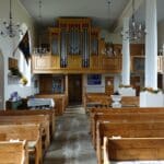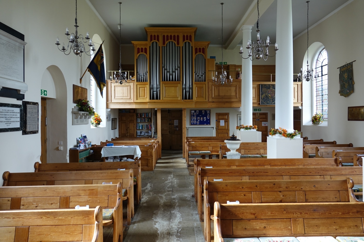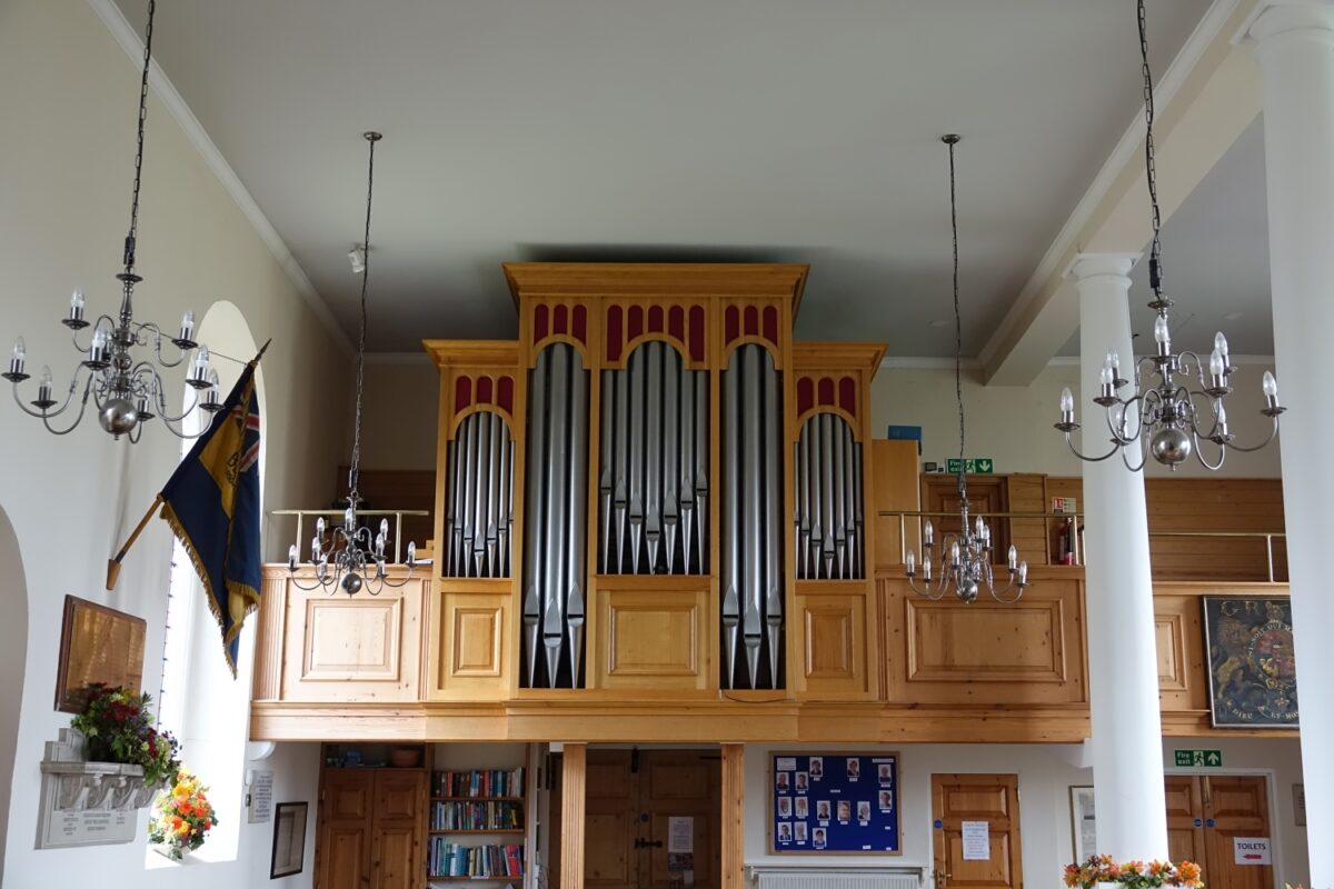 Great: C – g3 (56 toetsen) Open Diapason 8′, Stopped Diapason 8′, Principal 4′, Nasard 2 2/3′, Fifteenth 2′.
