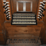PÉDALE (C – c1) 25 TOETSEN: Flûte 16′, Flûte 8′, Flûte 4′, Bombarde 16′, Trompette 8′, Clairon 4′.