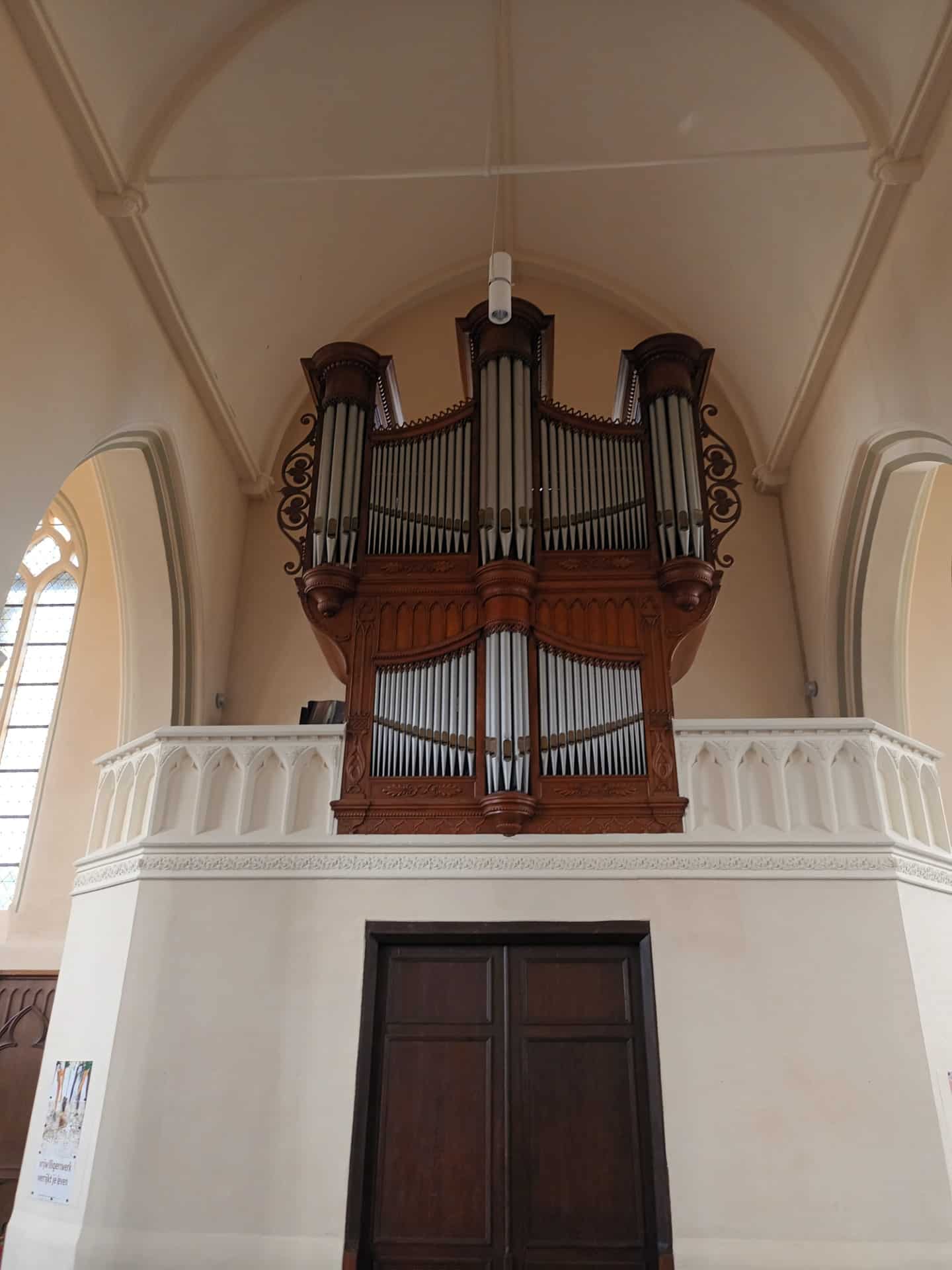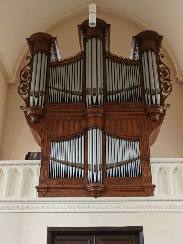 Groot Orgel (C-f3): 54 toetsen Gedekt 16′, Prestant 8′, Holpijp 8′, Dwarsfluit 8′ (discant), Octaaf 4′, Roerfluit 4′, Nazaard 2 2/3′, Zwegel 2′, Terts 1 3/5′, Cornet IV sterk (8′), Vulstem III sterk (1′), Trompet 8′, Schalmei 4′.