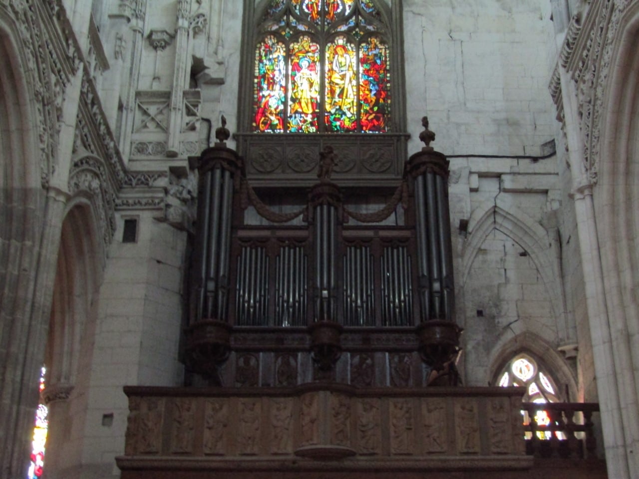Michel Giroud reconstrueerde het orgel van de Église Saint-Ouen in Pont-Audemer (Eure (27)) Frankrijk, naar de situatie van de zeventiende en achttiende-eeuw. In april 2000 is het mechanische sleepladen-orgel weer in gebruik genomen waarbij het bespeeld werd door Gustav Leonhardt. De bouwer van het oorspronkelijke orgel is onbekend.