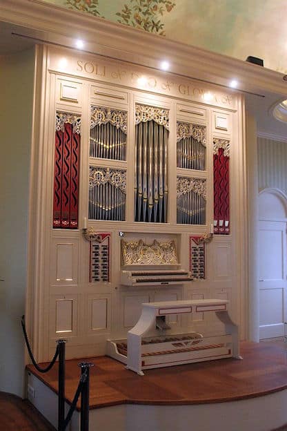 ZWELWERK (C-g3): 56 TOETSEN Holpijp 8′, Gamba 8′, Celeste 8′, Roerfluit 4′, Nasard 3′, Woudfluit 2′, Terts 1 3/5′, Roerschalmei 8′, Tremulant.